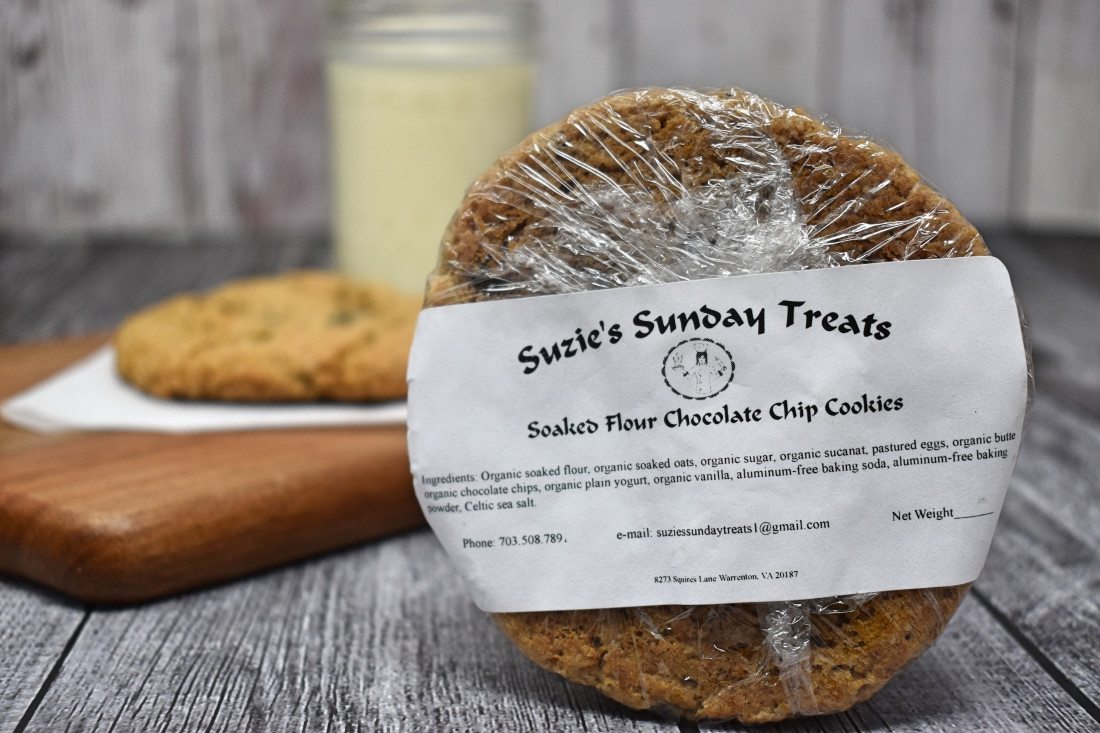 These cookies are made by our friend Sue Koster of Suzie's Sunday Treats. All organic ingredients! All butter and no vegetable oils! Additionally she soaks her freshly ground flour in yogurt to break down the grains to make them nutrient accessible.